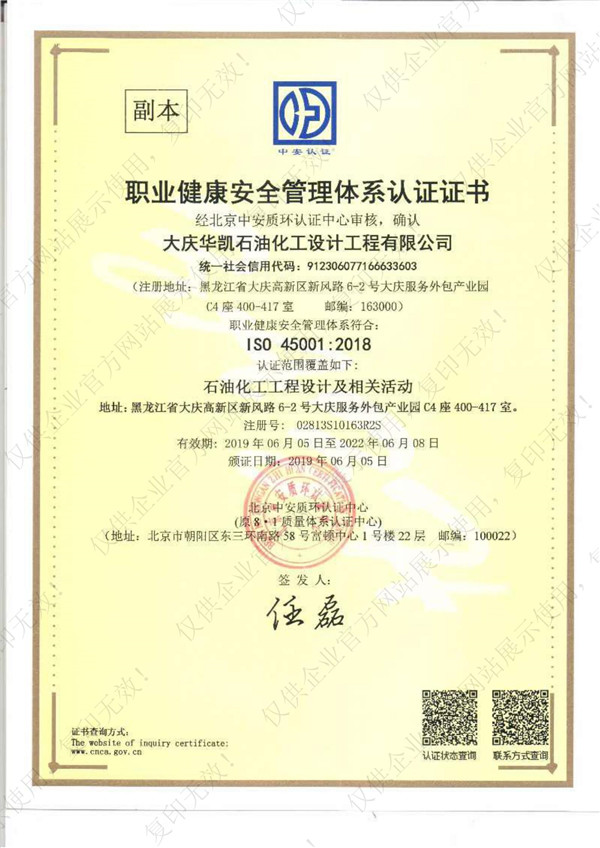 職業(yè)健康管理體系證書